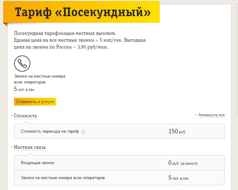 Тариф «Посекундный» дает возможность не переплачивать за неиспользованные услуги, а рассчитывая исключительно за время разговора, рассчитанное вплоть до последних секунд. Учитывая низкую стоимость разговора (пять копеек за секунду), этот тариф может оказаться самым выгодным для людей, что редко пользуются мобильными телефонами, совершая звонки лишь в случае необходимости.