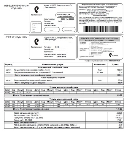 Квитанции от компании Ростелеком: как оплатить услуги по квинтации