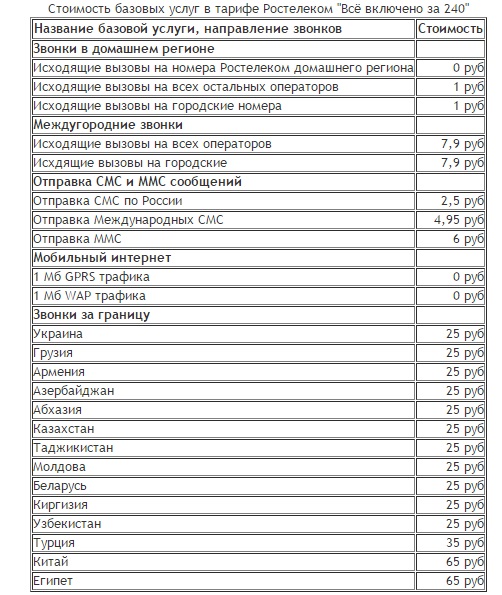 Все тарифы по-своему выгодны, не исключение этому и «Всё включено за 240». Данный тарифный план предлагает следующие условия: