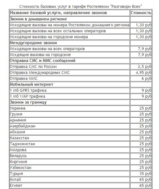 Как видите, у компании Ростелеком все тарифы на мобильную связь достаточно демократичны и удобны для людей, привыкших общаться с абонентами разных сотовых сетей.
