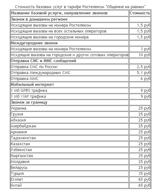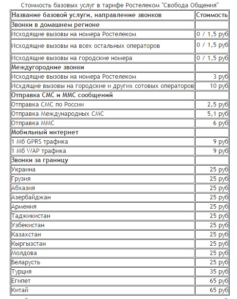 Итак, на данный момент существуют следующие тарифы сотовой связи Ростелеком: