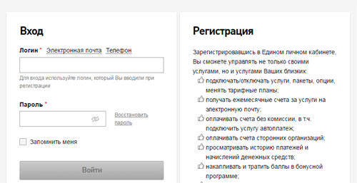 вход в личный кабинет по номеру телефона или по электронной почте.